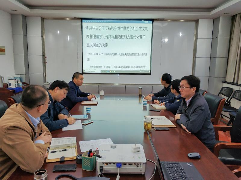 11月19日上午,工程設計公司召開黨總支支委會暨公司領(lǐng)導班子會深入學習黨的十九屆四中全會精神,總支副書記孫峻主持會議,帶領(lǐng)大家學習,重點對《中共中央關(guān)于堅持和完善中國特色社會主義制度、推進國家治理體系和治理能力現(xiàn)代化若干重大問題的決定》(以下簡稱“決定”)作了深刻而細致的解讀。